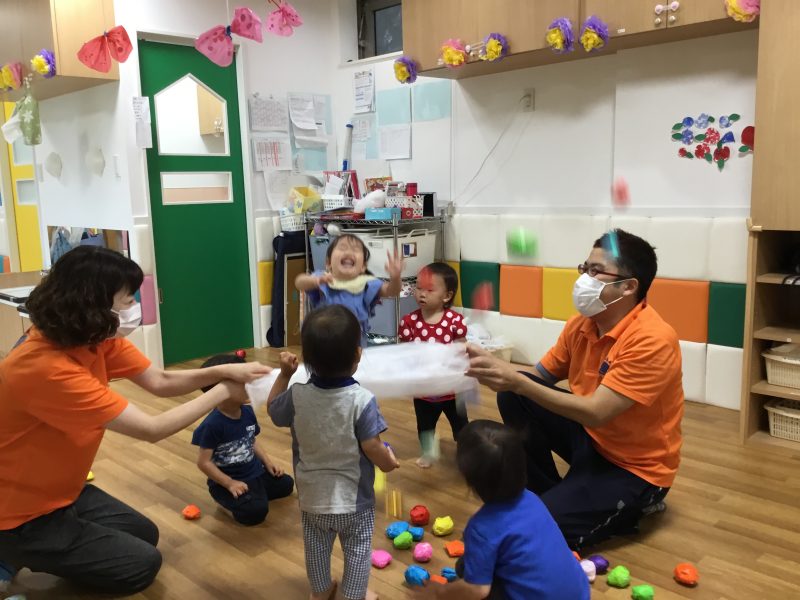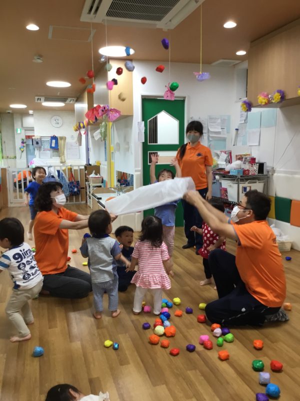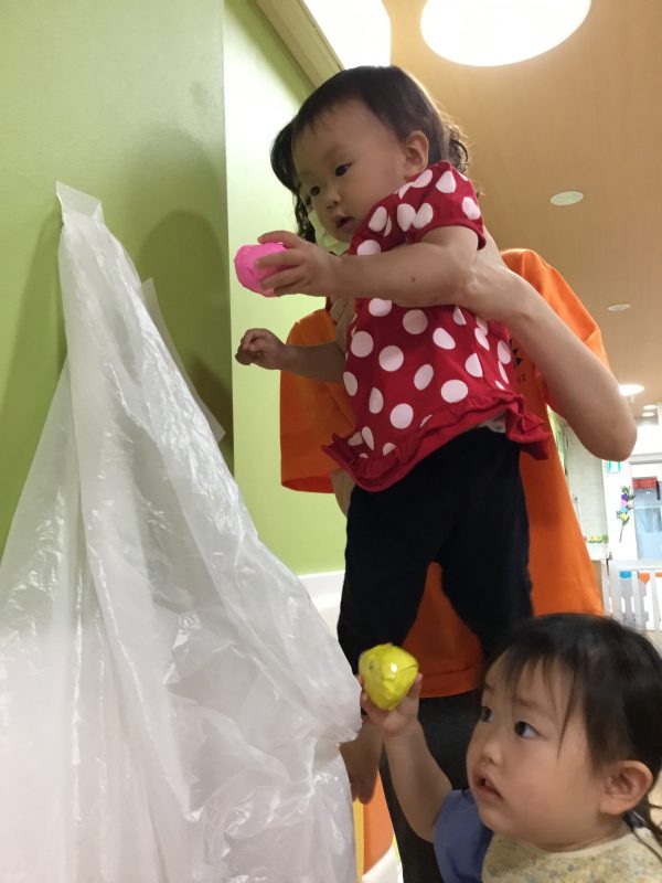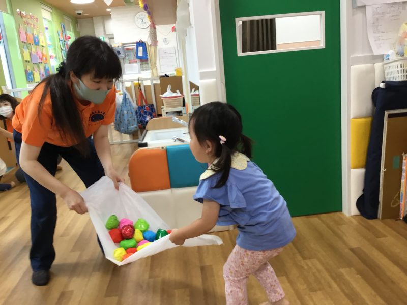 7/2はいちごぐみさん、りんごぐみさんで玉入れをしました