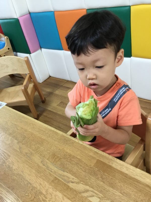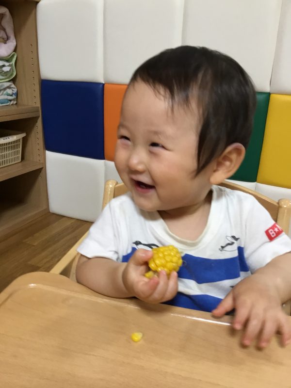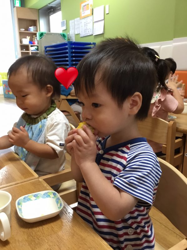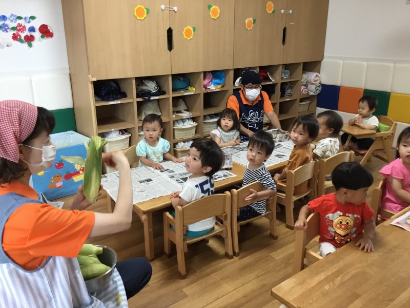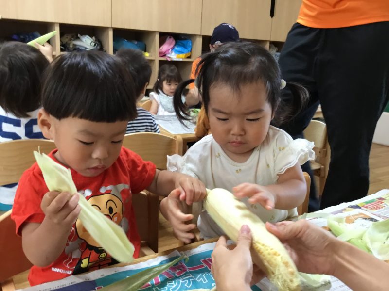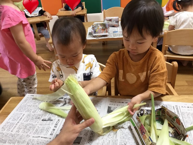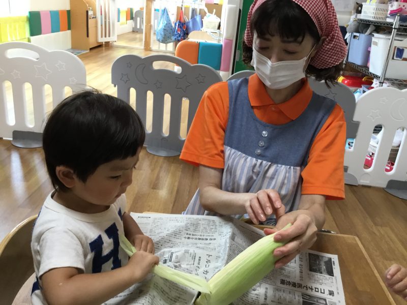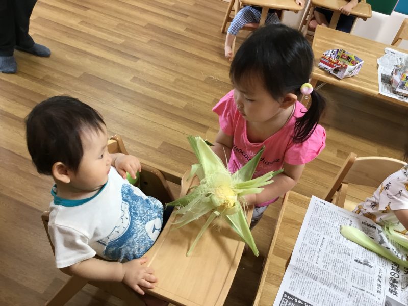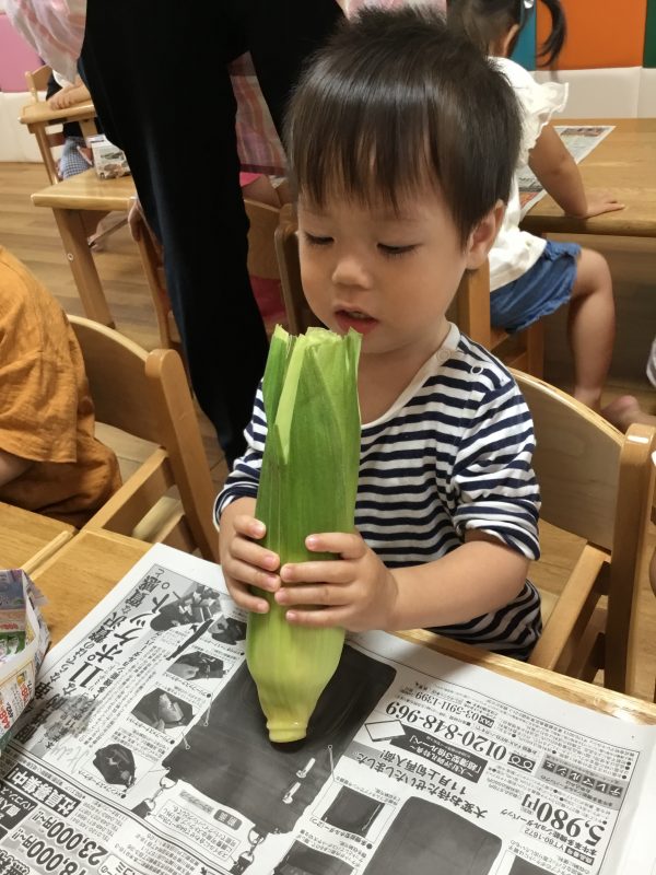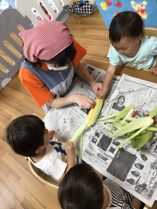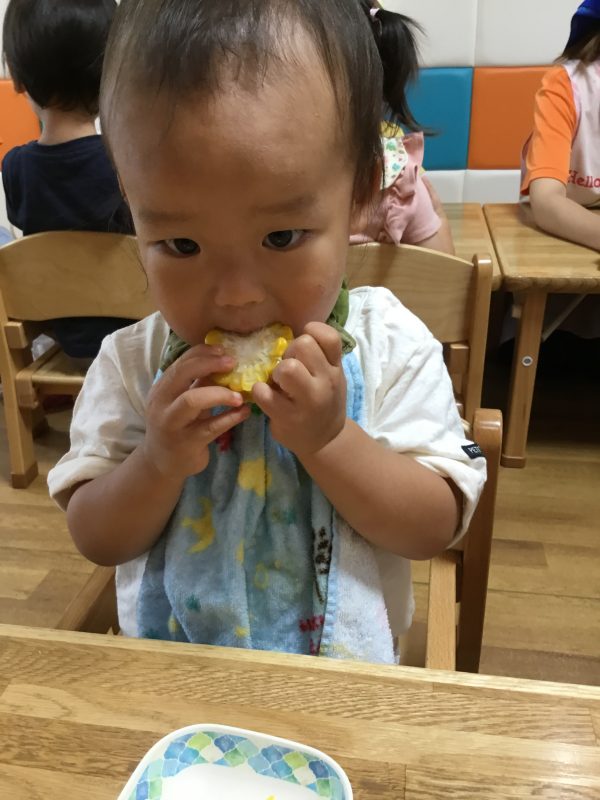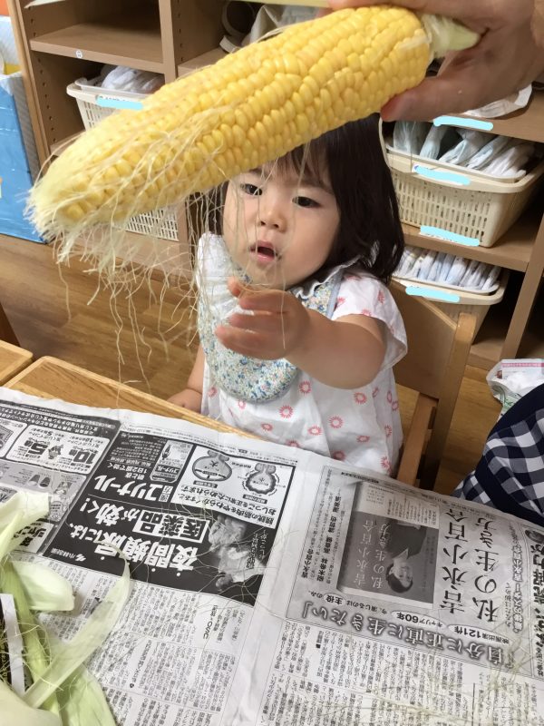 この日のおやつは子ども達がむいた「ゆでとうもろこし」でした![]()