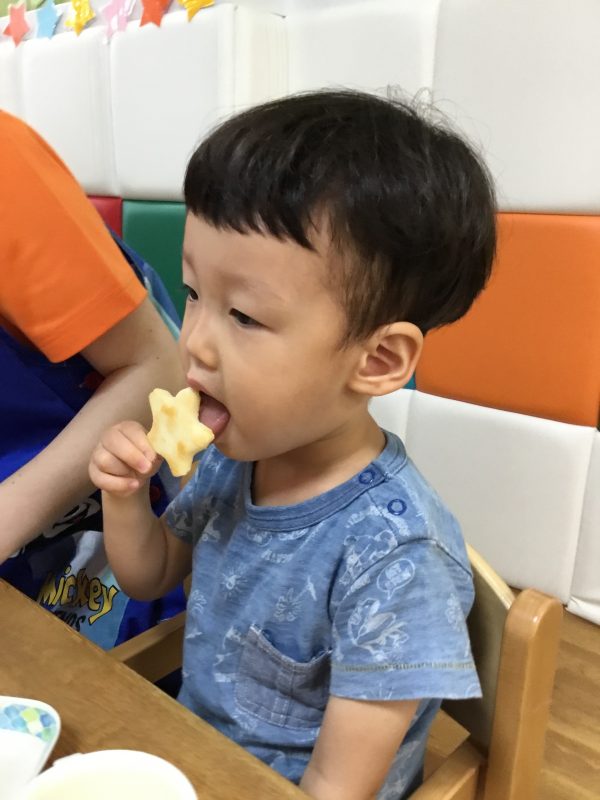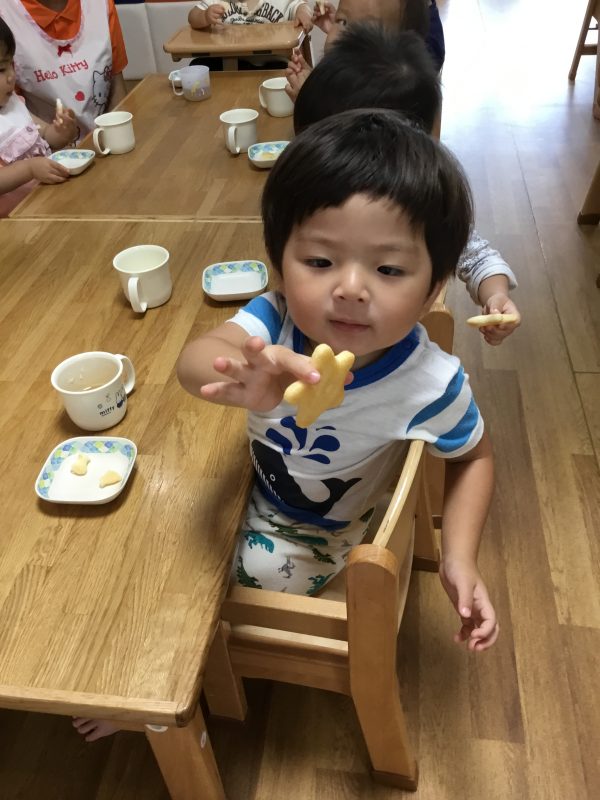 朝のおやつはお星さまの形のおせんべいでした![]()