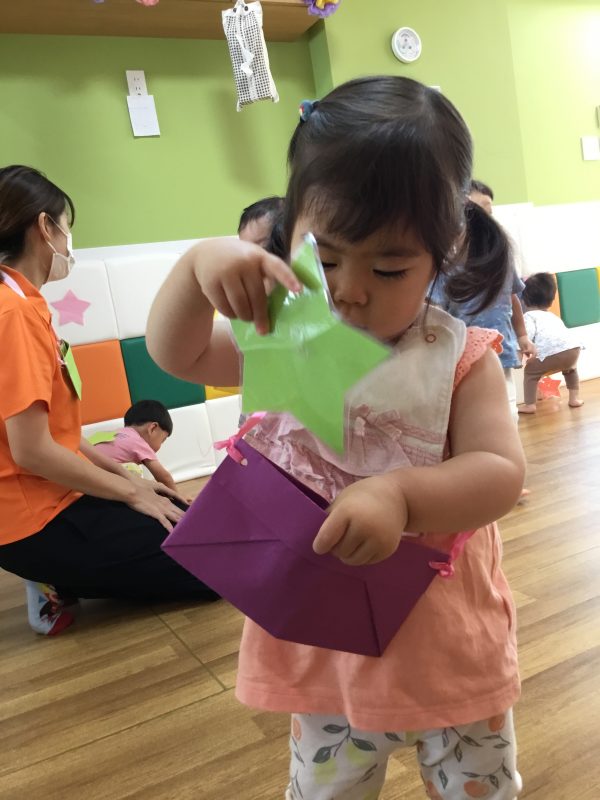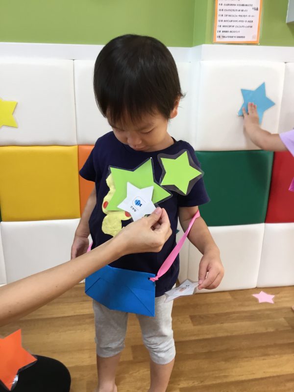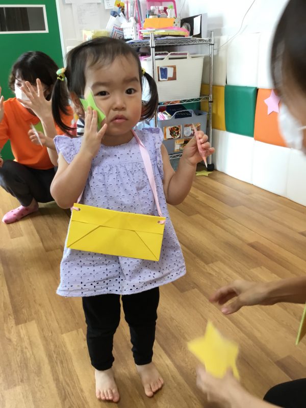 ポシェットに沢山星をいれていく子ども達![]()