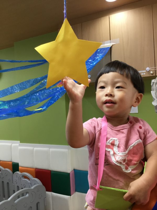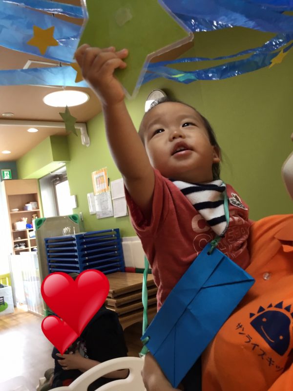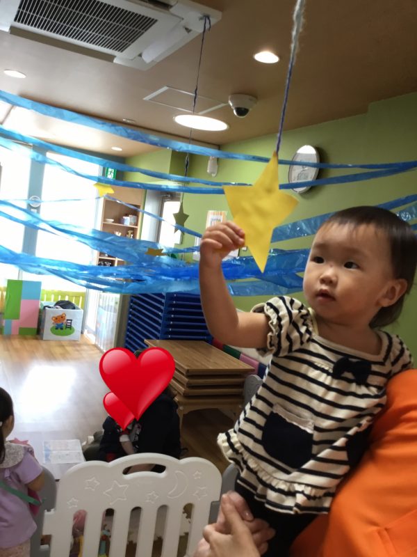 お星さまと天の川が流れていて、子ども達も指差しをして興味津々![]()