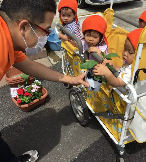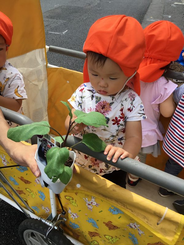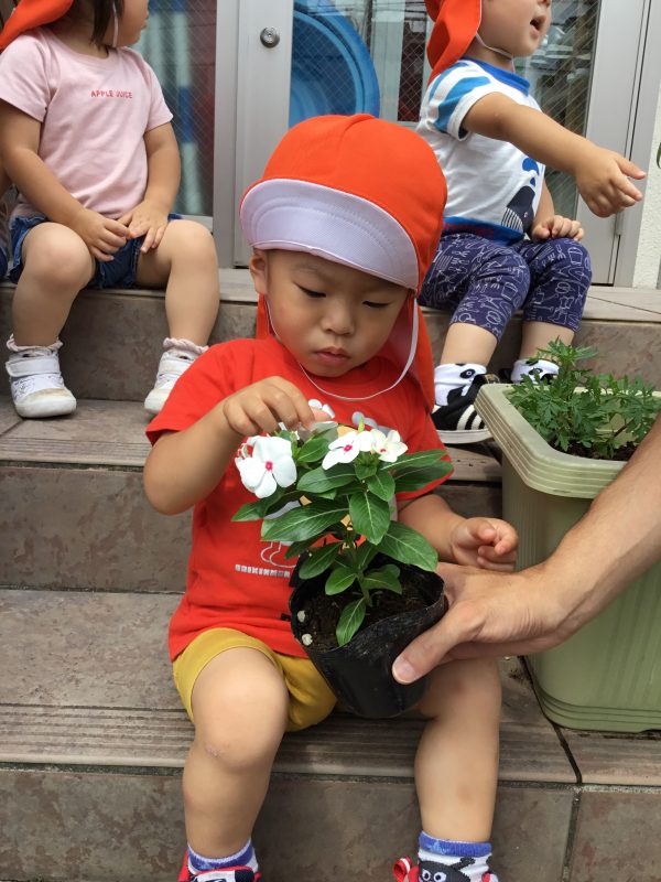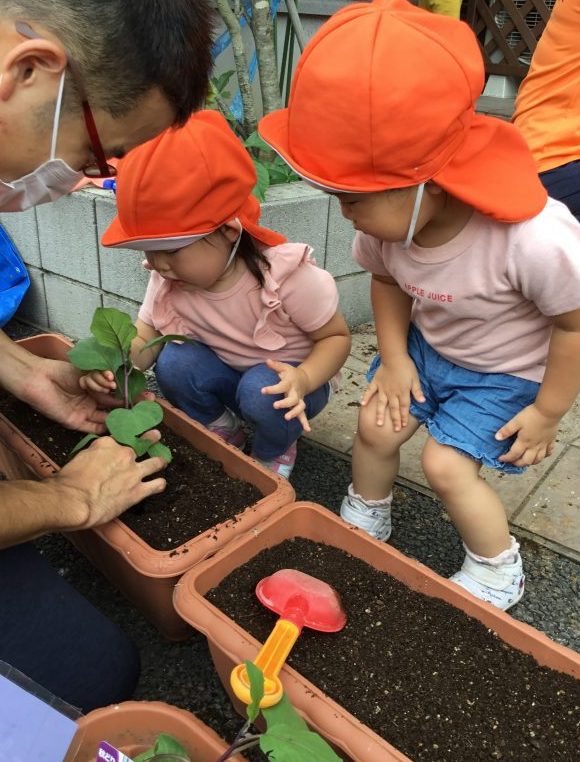子ども達の可愛い声がきっとナスや日日草に届いたと思います![]()