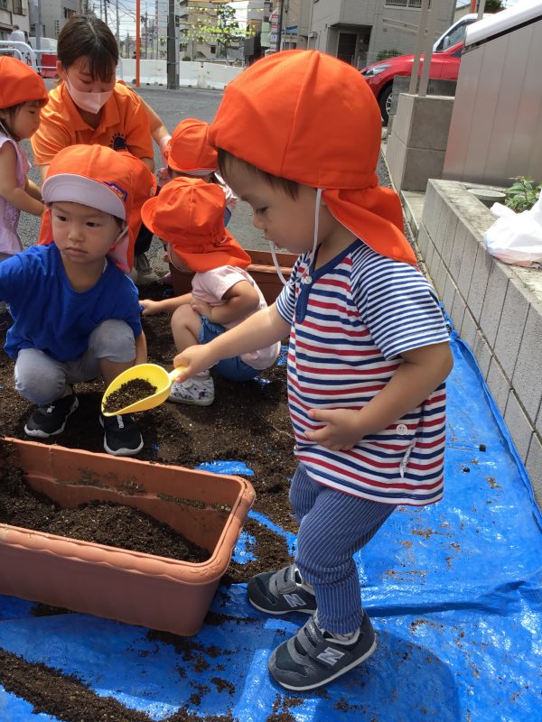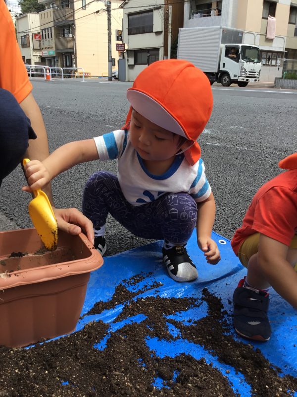 上手に土をすくってプランターに入れてくれましたよ![]()