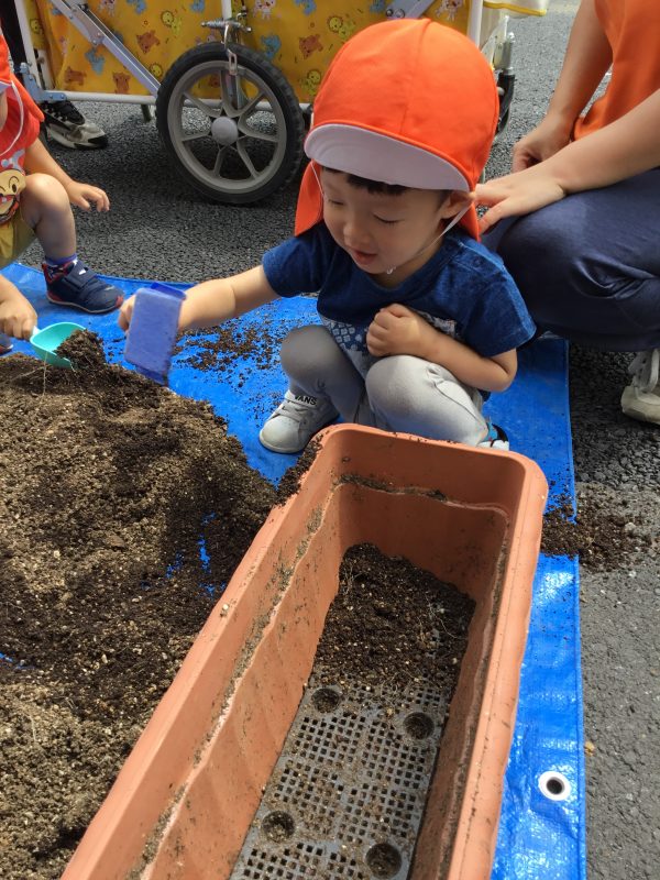 上手に土をすくってプランターに入れてくれましたよ![]()