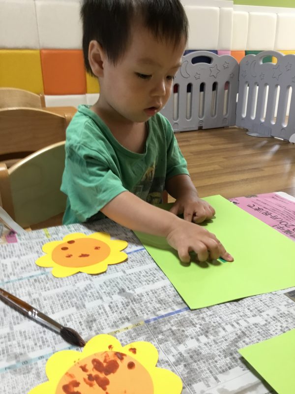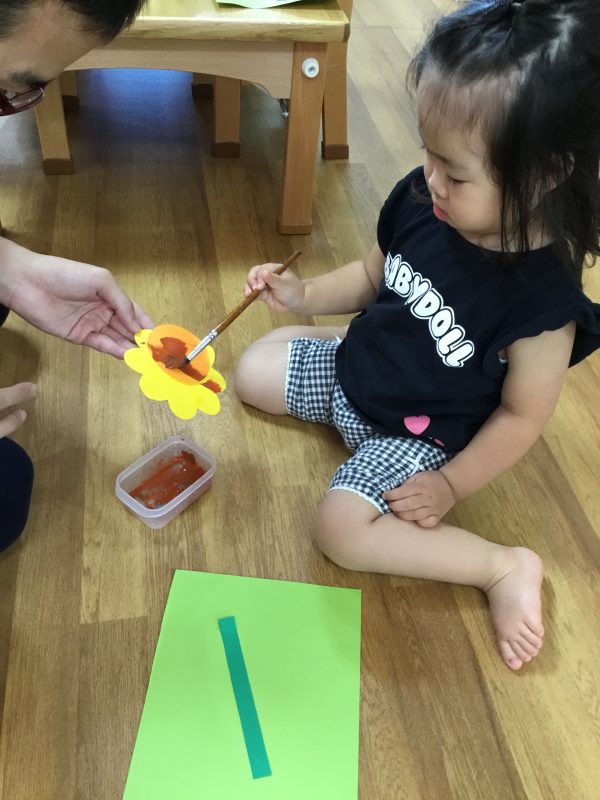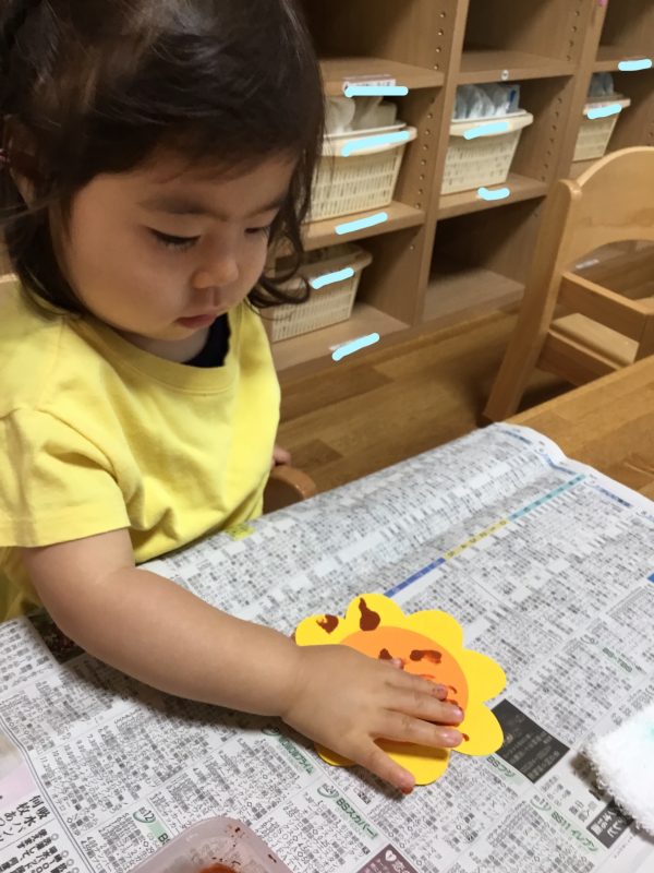 ひまわりの種も絵の具をつけてペタペタ![]()