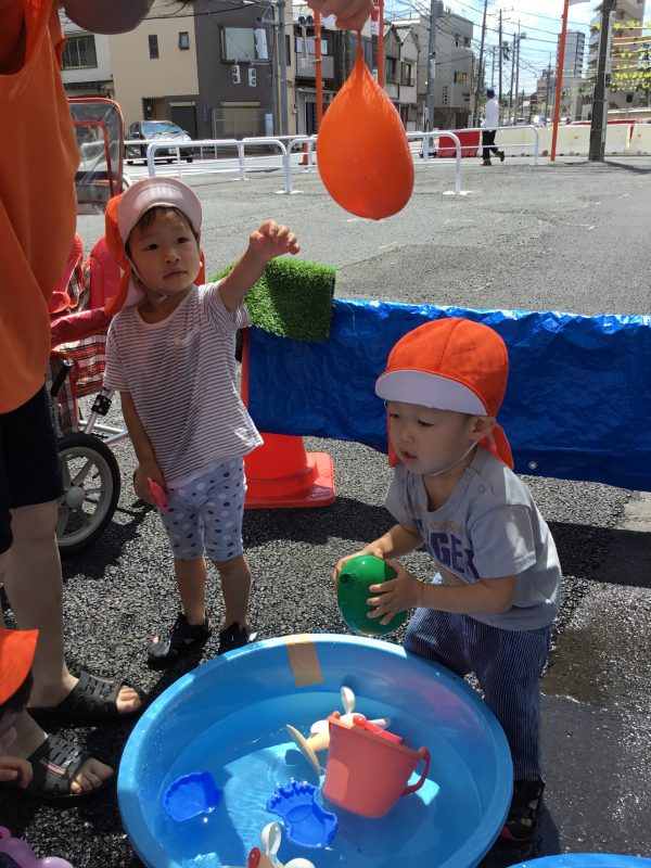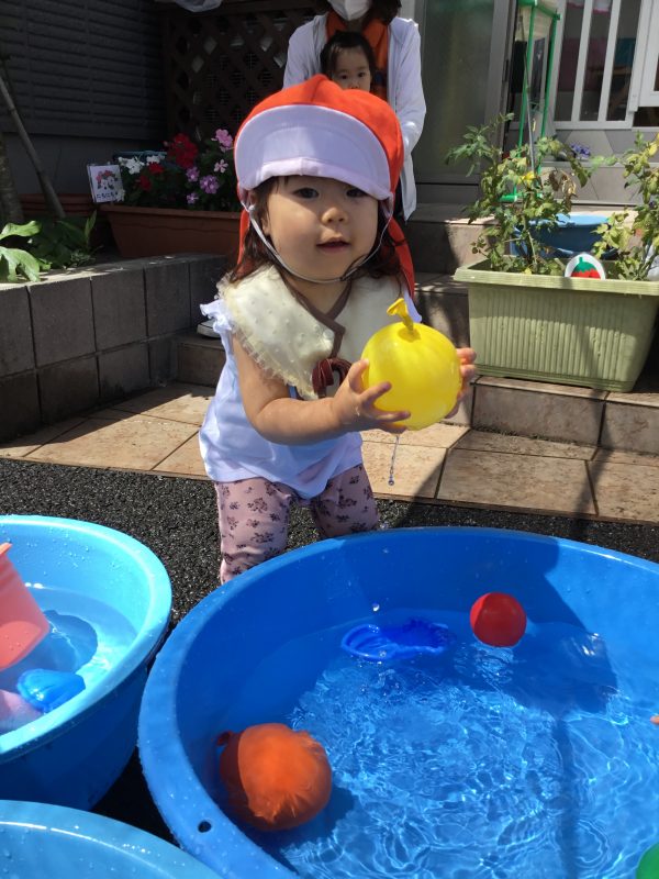 水の入った風船の感触が気持ちよく、子ども達に大人気でした![]()