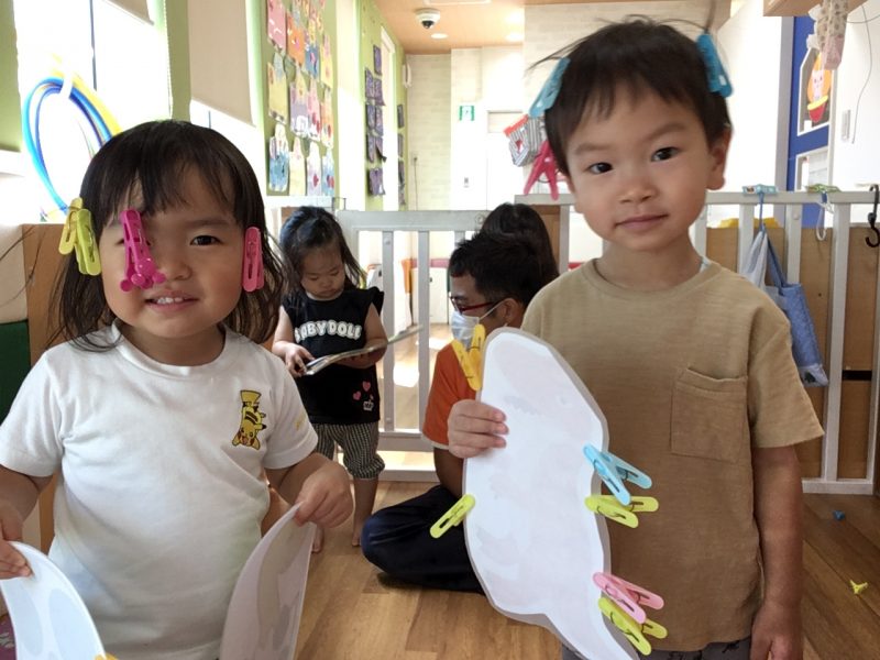電車や洗濯ばさみ遊びでも楽しく遊びました![]()