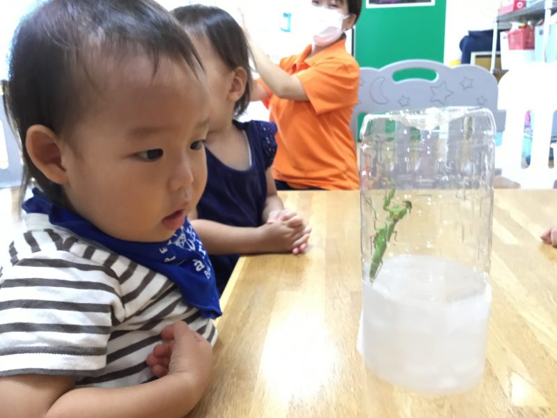 先日保育園の玄関にカマキリさんが遊びにきてくれていて、