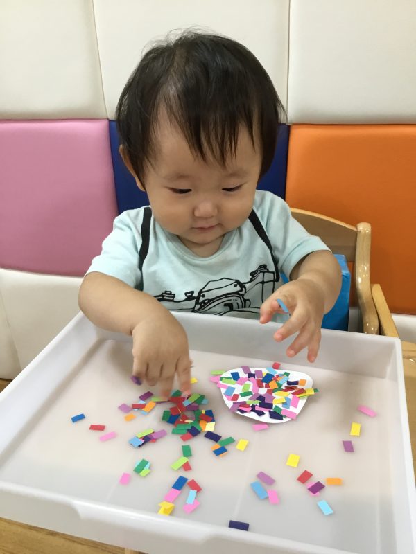 りんごぐみさんはのりで丁寧に貼り付けました![]()
