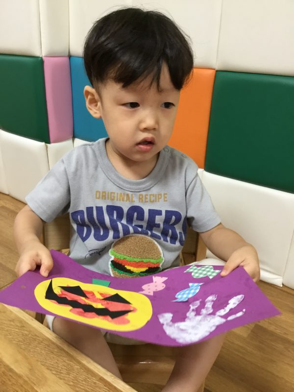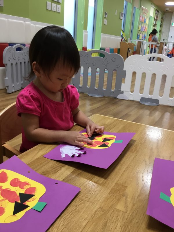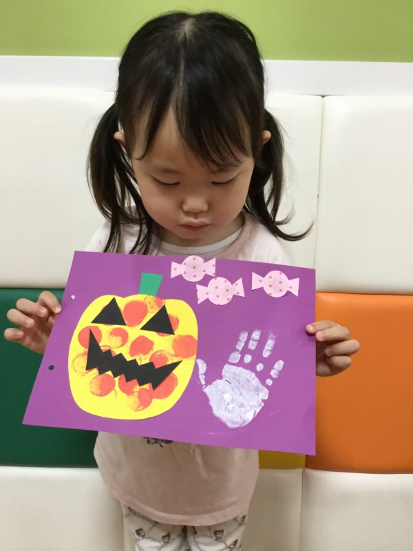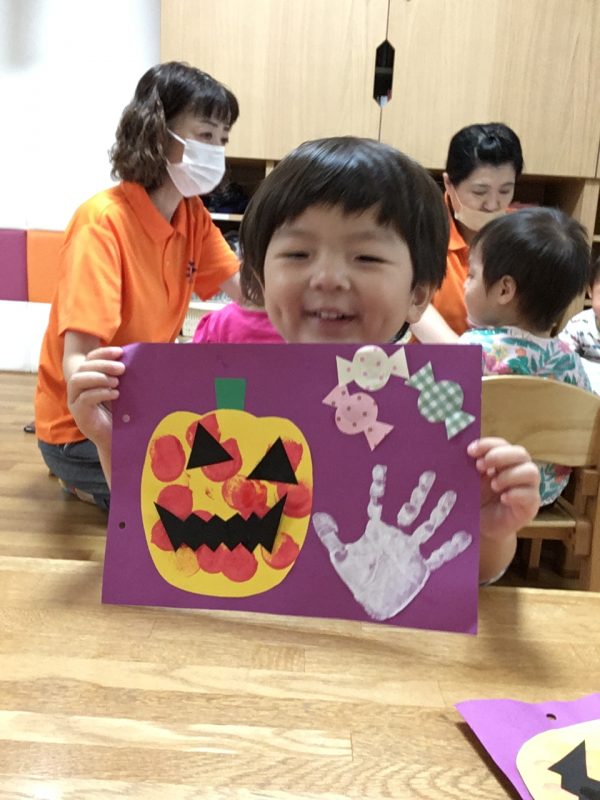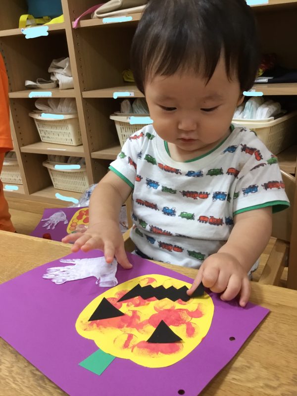 今日はかぼちゃのおばけの目や口をつけました![]()