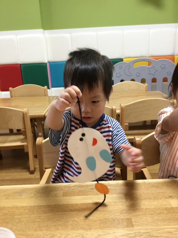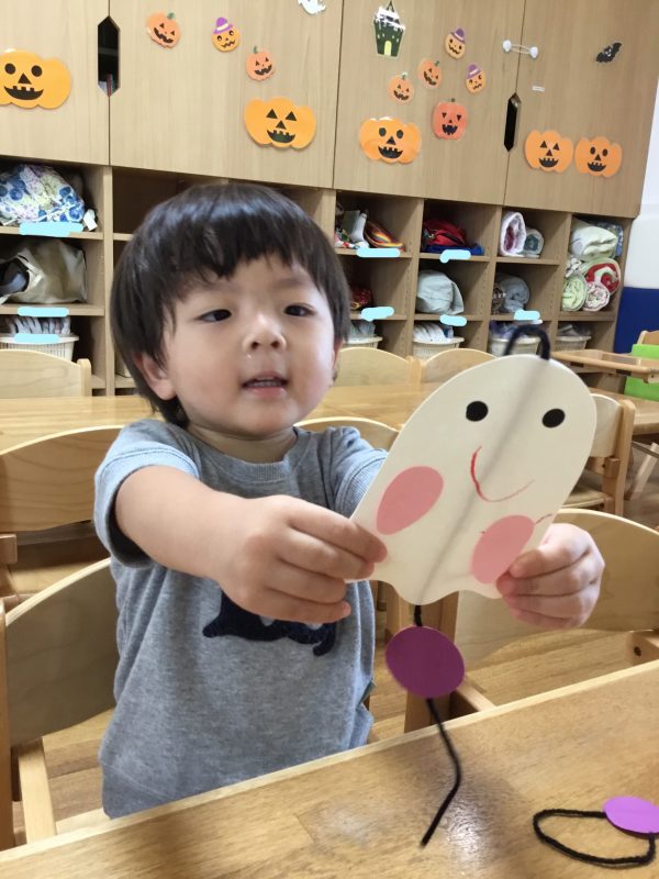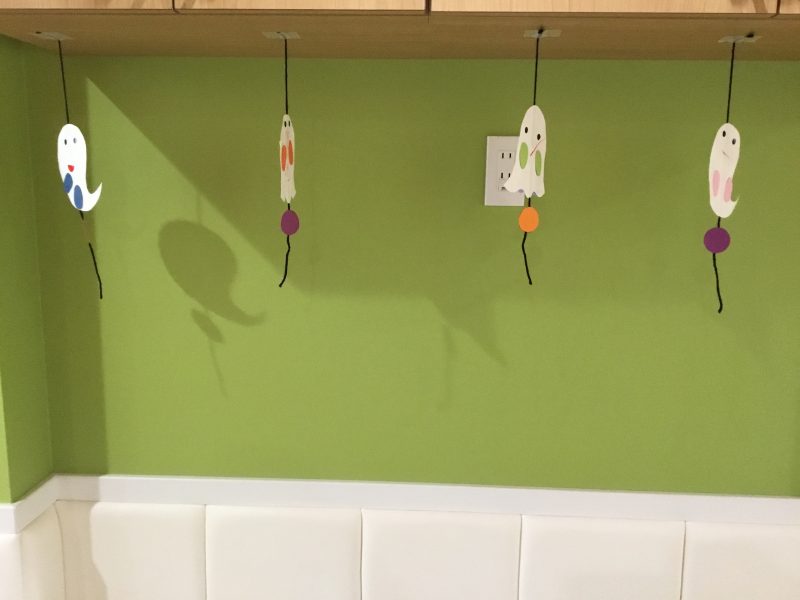 子ども達が作ったおバケのオーナメントがユラユラ揺れています![]()