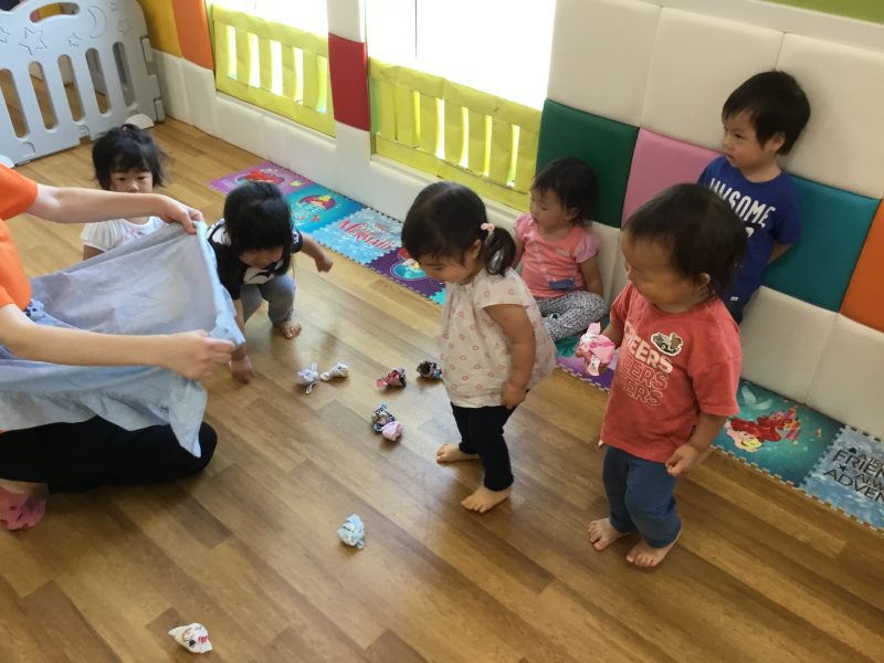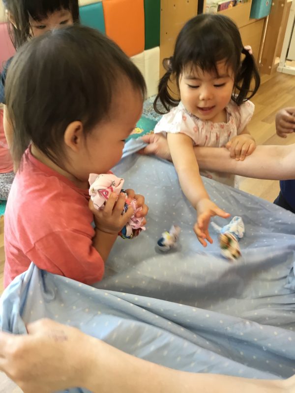 丸めたハンカチで玉入れです![]()