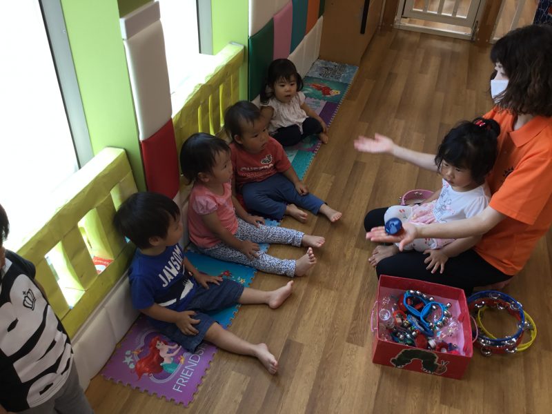 タンバリンやすずやマラカスで楽しくリズム遊びをしました![]()