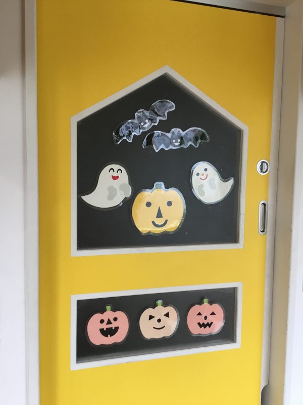 子ども達が作ったおバケのオーナメントがユラユラ揺れています![]()