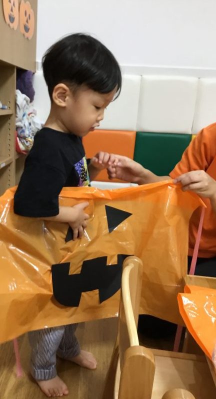 今週はハロウィン会に向けてマント作りとポシェット作りをしました![]()