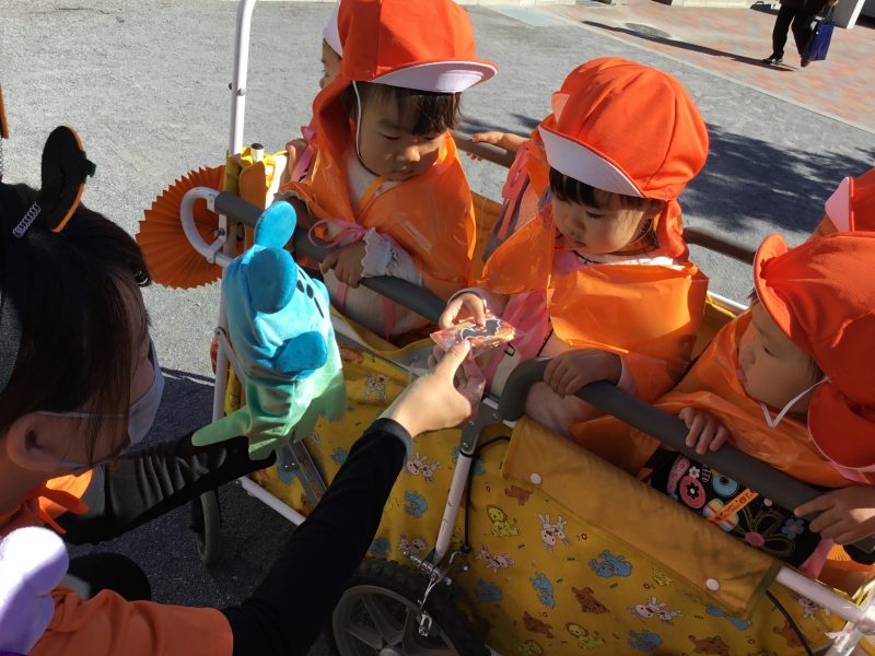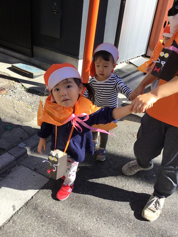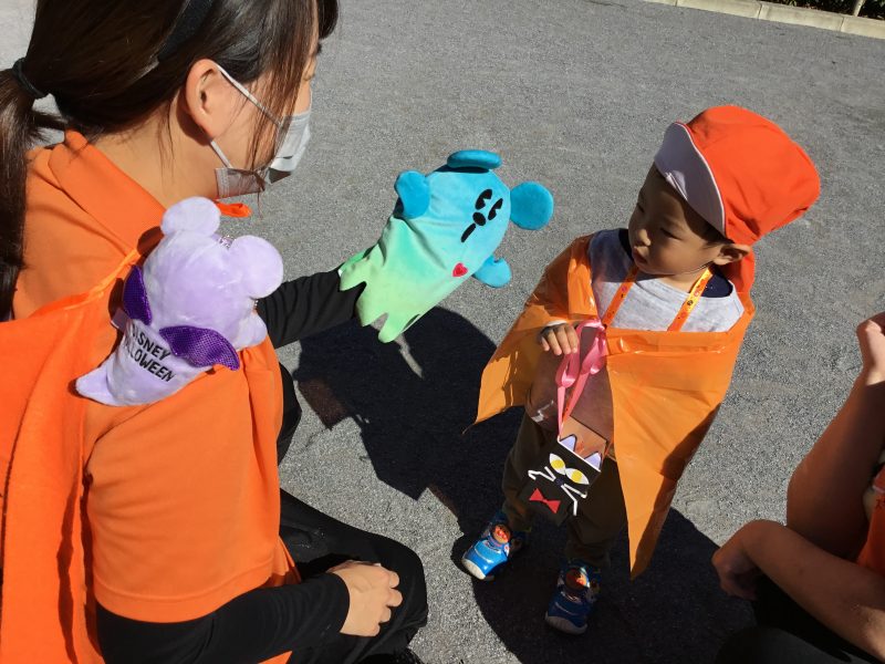 「仮装してお外にでて園長先生がいたらトリックオアトリートって言うんだよ![]()