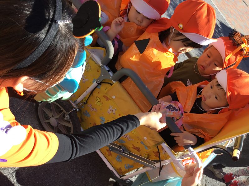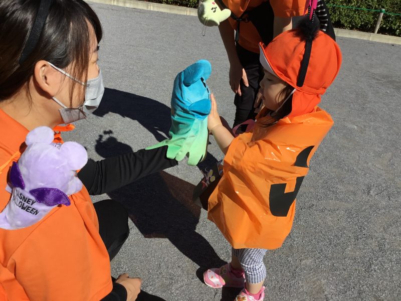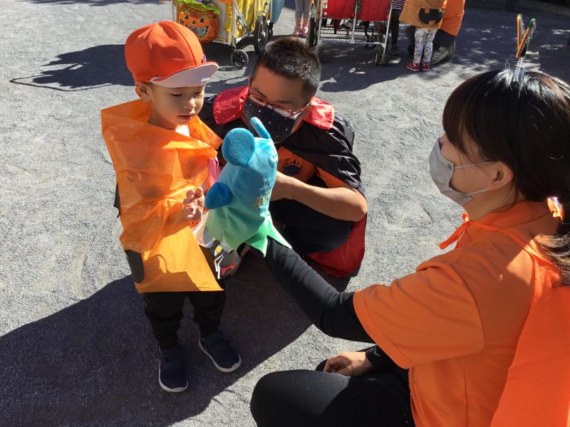 公園につくと、園長先生に「トリックオアトリート!」と言うと