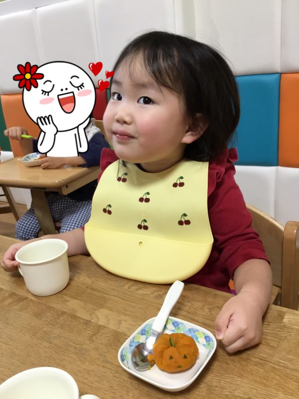 おやつは調理さんが心をこめて作ったかぼちゃのおばけの巾着でした![]()