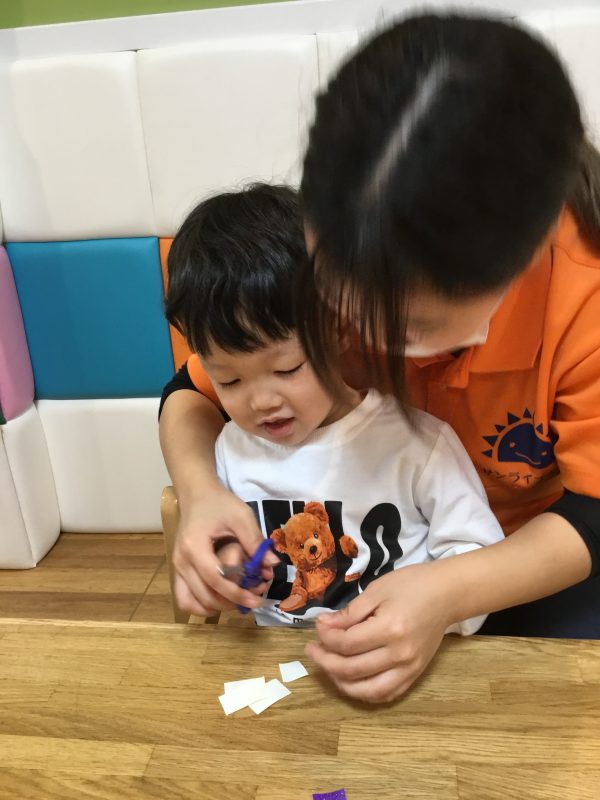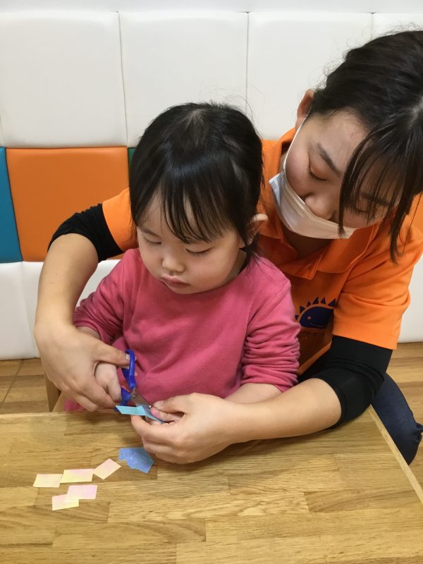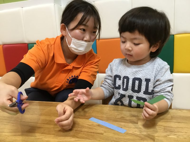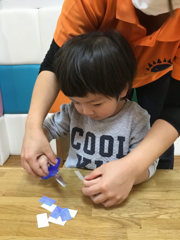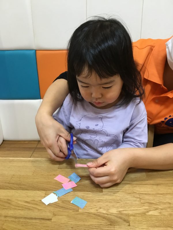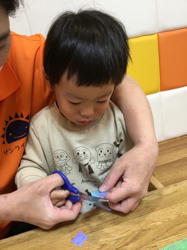 今回はりんごぐみさんは初めてハサミに挑戦しました
