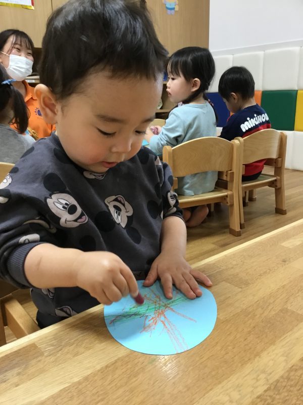 線を描いたり、〇を描いたり、色を変えてお絵かきが大好きないちごぐみさんでした