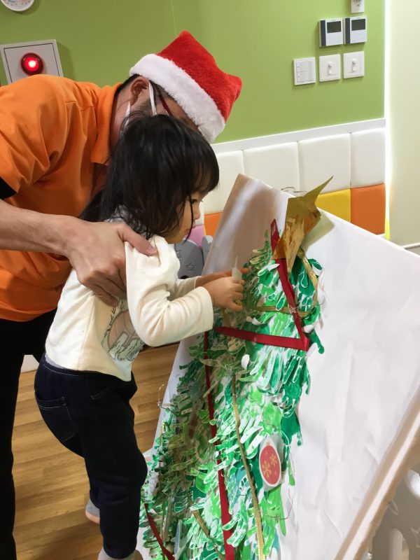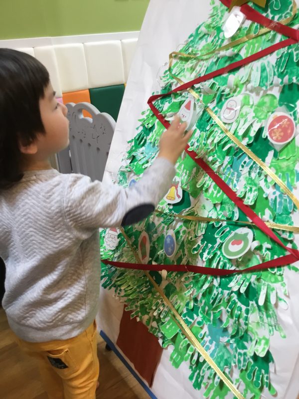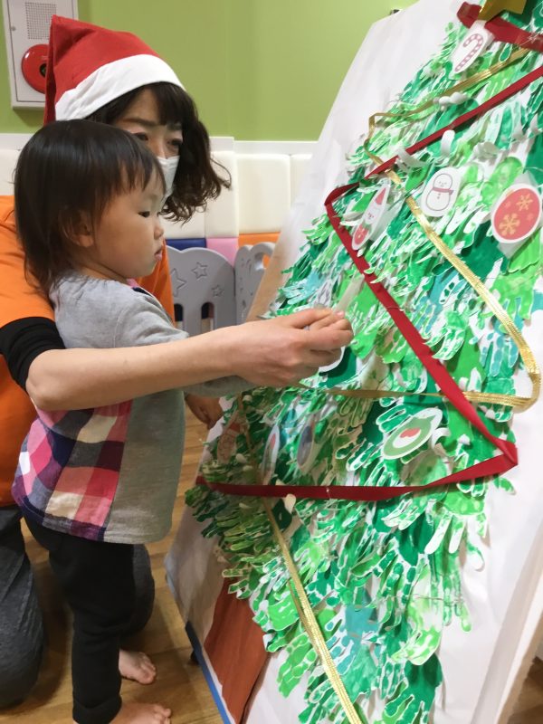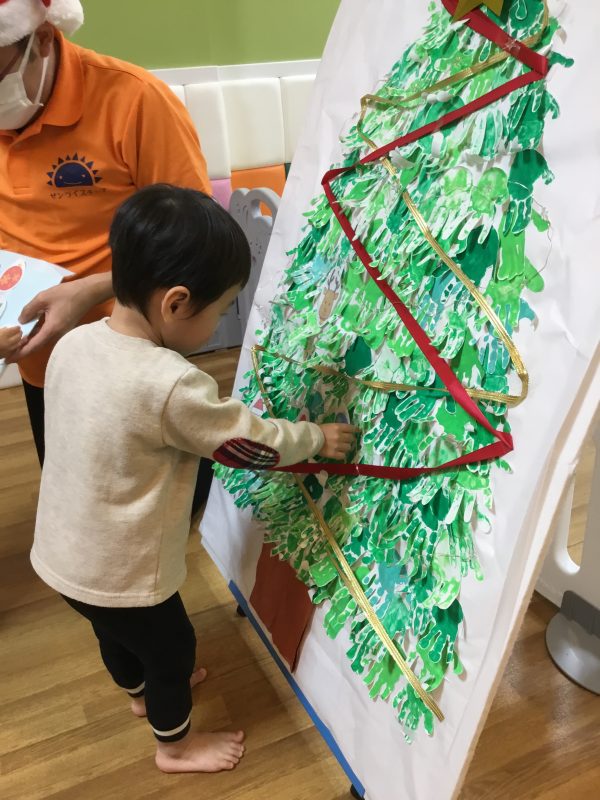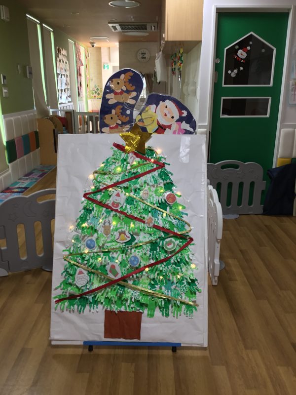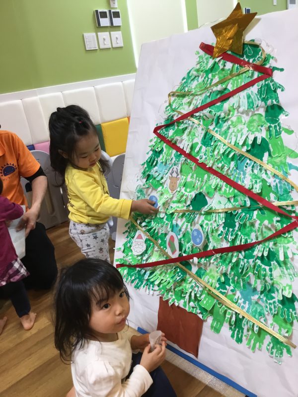 それから子ども達と手形をとって作ったクリスマスツリーに