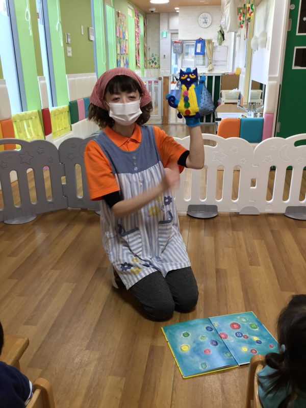 先生からは「ねこのピート」の手袋シアターの