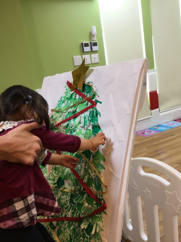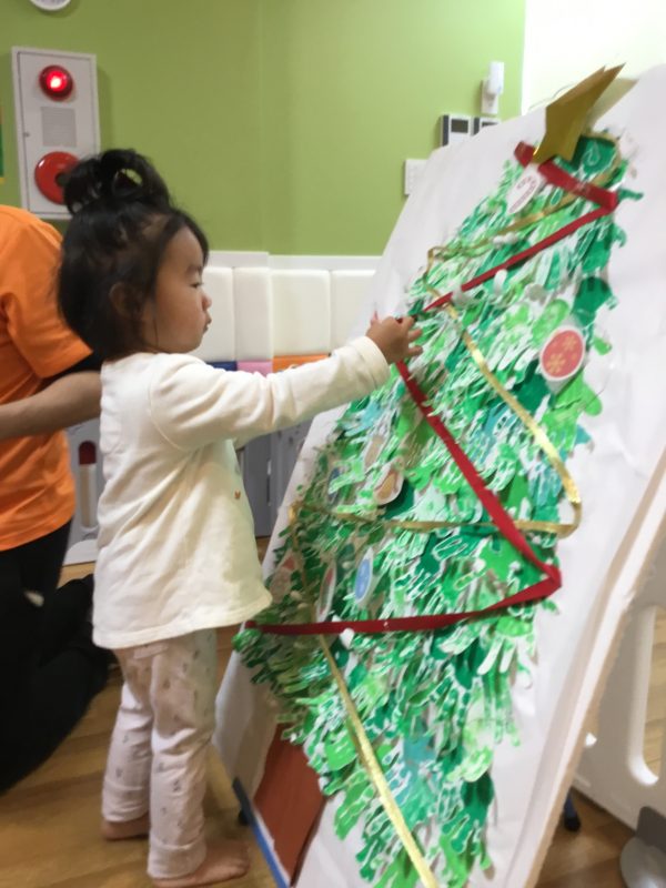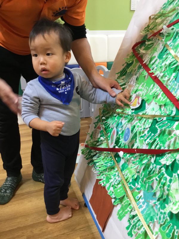 それから子ども達と手形をとって作ったクリスマスツリーに
