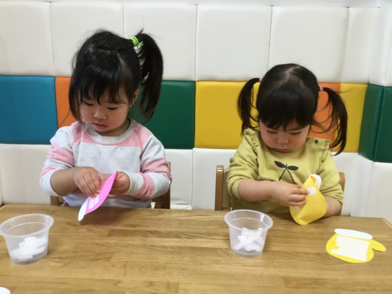 両面テープを剥がすのはお手の物の子ども達![]()