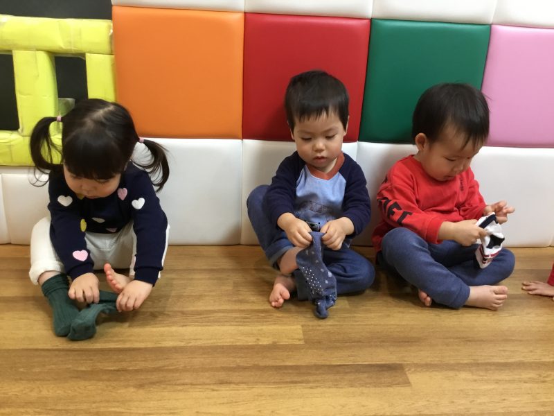 お着替えや靴下を履く事、上着を着る事