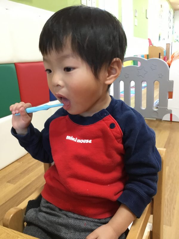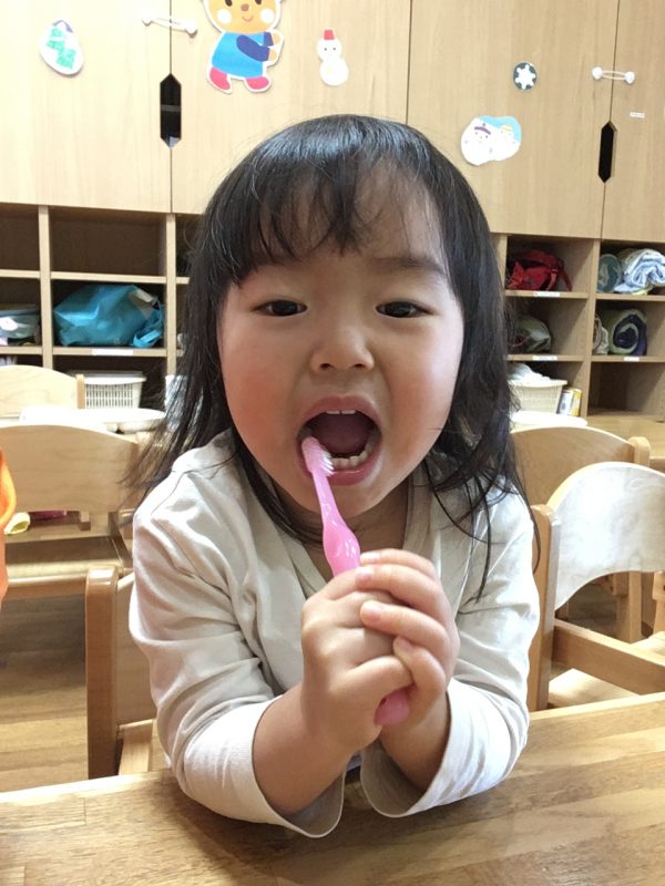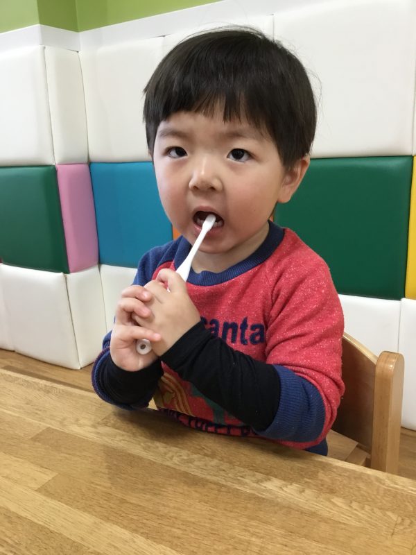 歯磨きの後にいちご組みの友だちに「今ね歯磨きしたんだよ。」と話しすると「スゴいね‼︎」と
