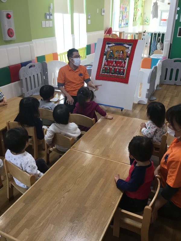 最後はひなまつりの紙芝居を読んで、写真をとって