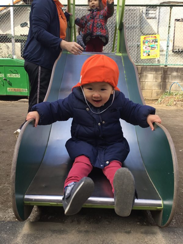 滑り台をしたいときは、先生と一緒に・・・というお約束があります。