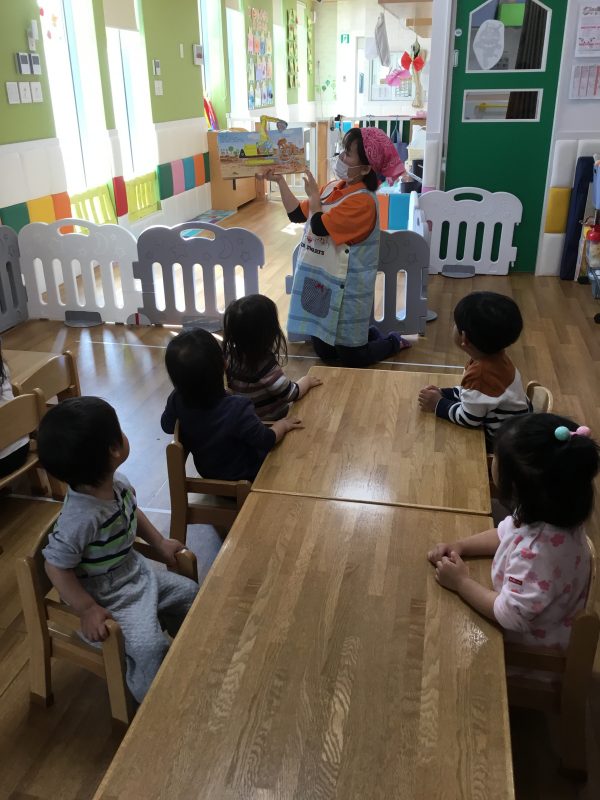 しかけ絵本で、子どもたちはくぎづけになってみていました