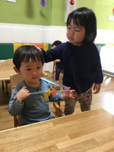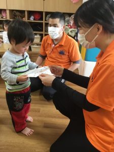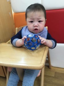 涙を流すおこさまもいましたが、少し時間がたつと、おもちゃで遊んだり、おやつを食べたりして過ごす事も出来ました![]()