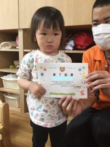 頑張ったこどもたちに修了証書のプレゼントです![]()