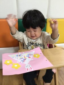 お花は好きなところにノリで貼ってみんな出来栄えにニコニコでした![]()