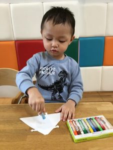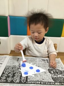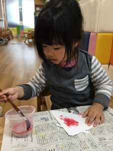 その後は絵の具を上から塗ってはじき絵が出来上がり![]()