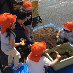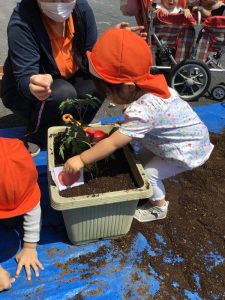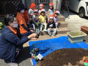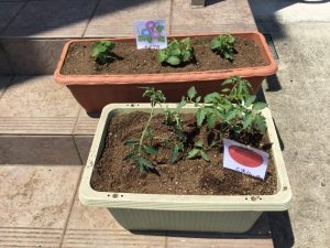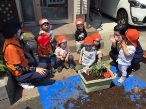 今週は「トマト」と「あさがお」をみんなで植えましたよ