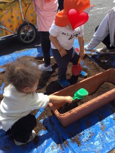 いつも行っている公園の土とは違う感覚の土を触りながら