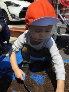いつも行っている公園の土とは違う感覚の土を触りながら