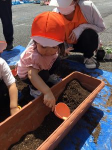 今週は「トマト」と「あさがお」をみんなで植えましたよ