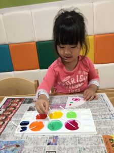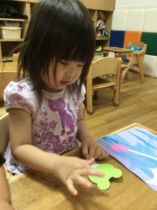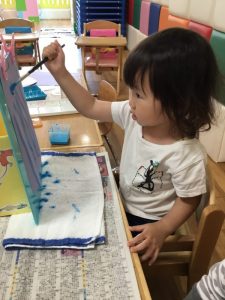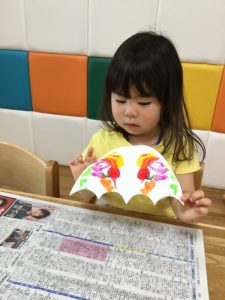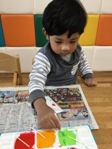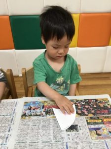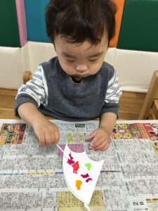 のり付けも慣れてきて、人差し指で上手に塗っていました![]()