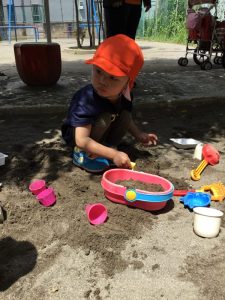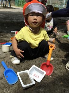 大きなお砂場では大きなお山を作ったり、ケーキやアイスを作っていました。