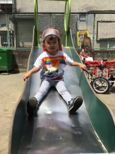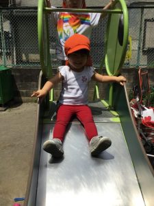 こちらは、ワニさんの滑り台です?一度滑ると「もういっかいやる〜