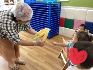 調理の先生が茹でてくれたとうもろこしを