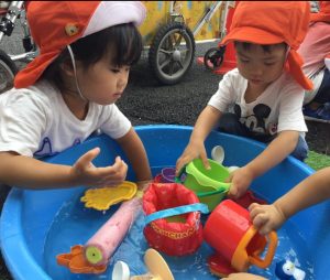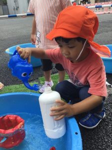 お天気をみて、水遊びもスタートしました