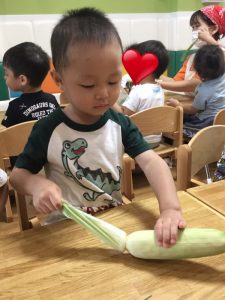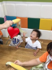 とうもろこし皮むきや七夕会、水遊びをしたので