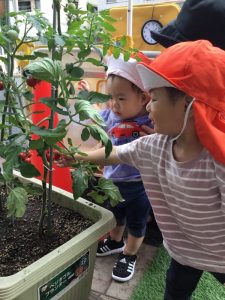 今週もみんなで植えたトマトが収穫時期を迎えているので