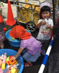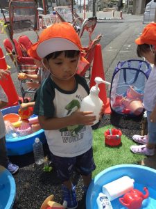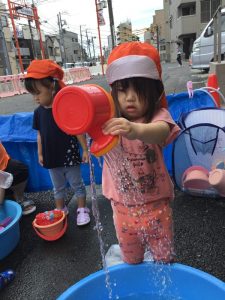 「○○ちゃん水遊び行こうか~!」と声をかけると