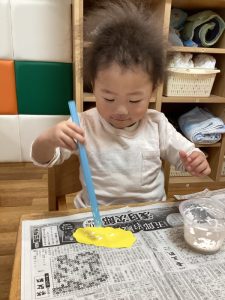 ストロースタンプ、好きな色を選んで、最初はおそるおそるな様子でしたが…